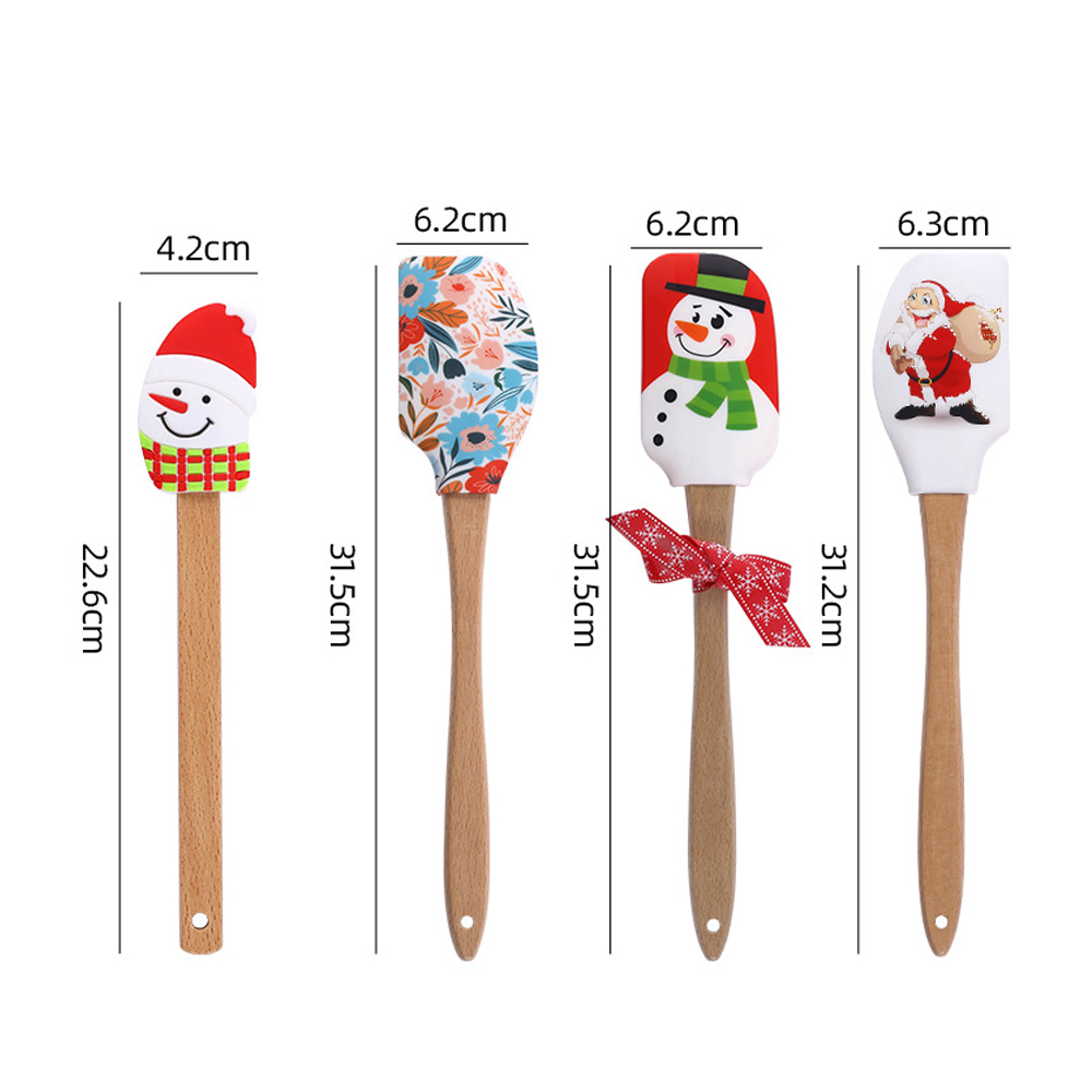 Christmas Pattern Food Grade Silicone Butter Scraper Baking Pastry Spatula with Wooden Handle