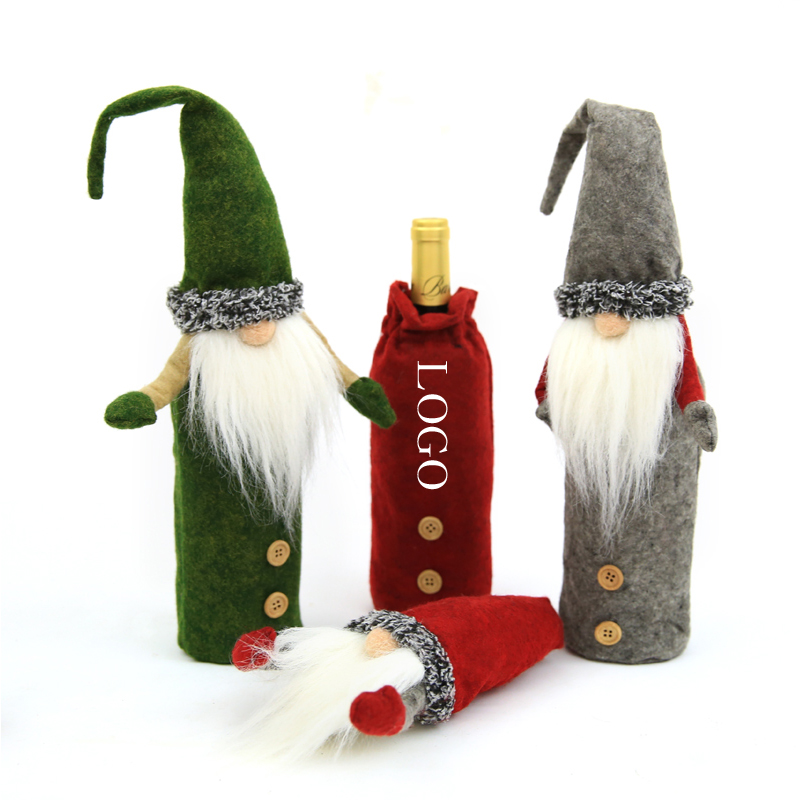 This wine bag fits any standard bottles of wine. It will make a good wine bottle gift bag that has a drawstring closure. You can also stuff other goods inside too! It is divided into two parts: a hat and a bag. The design was inspired by the reindeer Rudolph. It is cute and practical, perfect for Christmas. Your logo can be printed on the back.