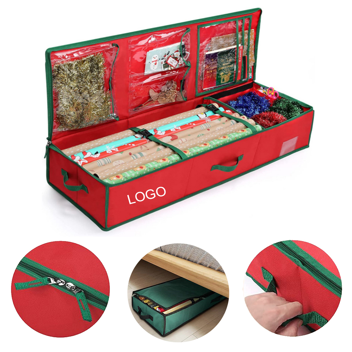 | Feature : | Durable Oxford Fabric Wrapping Paper Underbed Storage Bag For Holiday Accessories |
