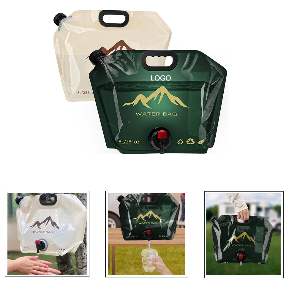 This portable water container is made of food-grade pet plastic. This camping water container bag can be folded and put into a backpack without taking up space, lightweight and the handle is designed for easy gripping and carrying. Fill with water from the top and tighten the screw cap, remove the white cap on the spigot and turn the spigot switch and water will flow out.