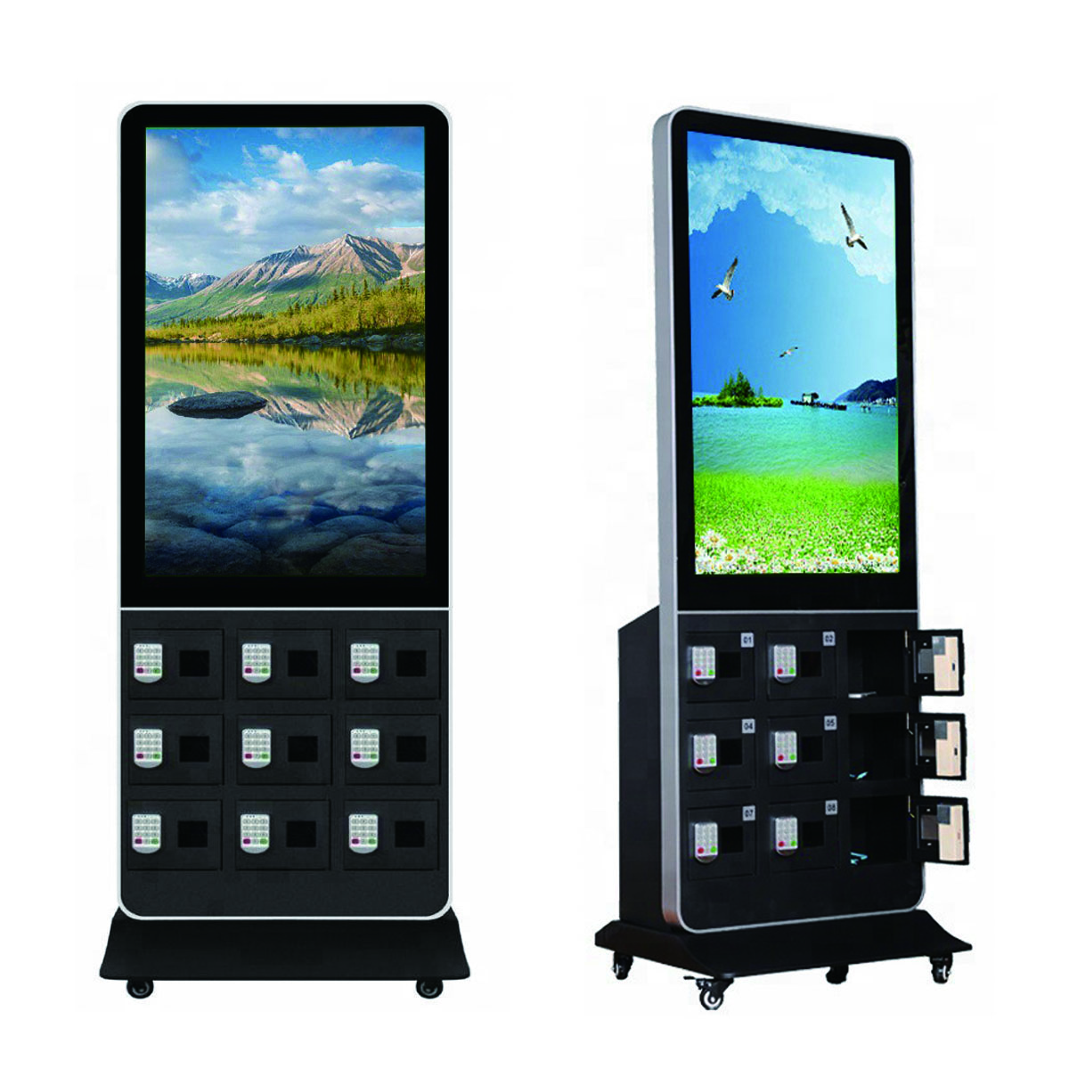| Feature : | Commercial 42 Inch Charging Station Floor Stand Digital Free Standing LCD Advertising Display Monitor with Phone Charger Locker |