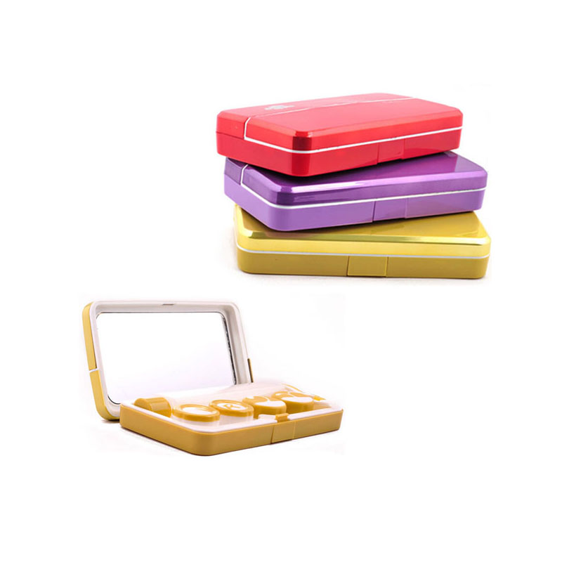 This nice contact lens travel kit features a large built-in mirror convenience for you wearing the contact lenses. Long rectangular shape contains a large empty solution bottle, a tweezers, a stick and 2 pairs contact lens box inside. The strong hinge securely keeps the case closed. The metallic contact lens travel kit comes with everything that you need to clean your contact lenses with while traveling.