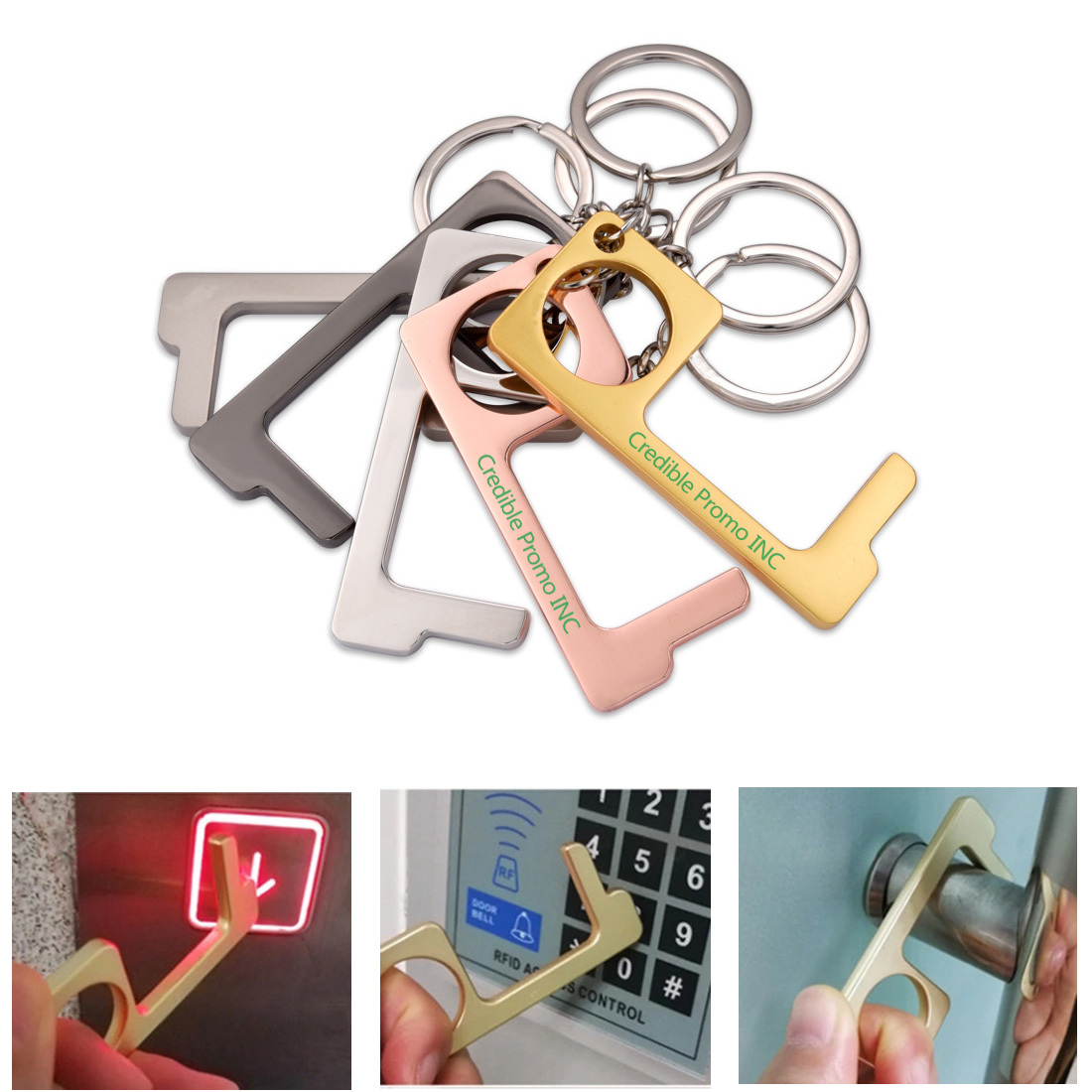 Custom Antimicrobial Hand Tool No Touch Door Opener Bottle Opener Function Hygiene Keychain