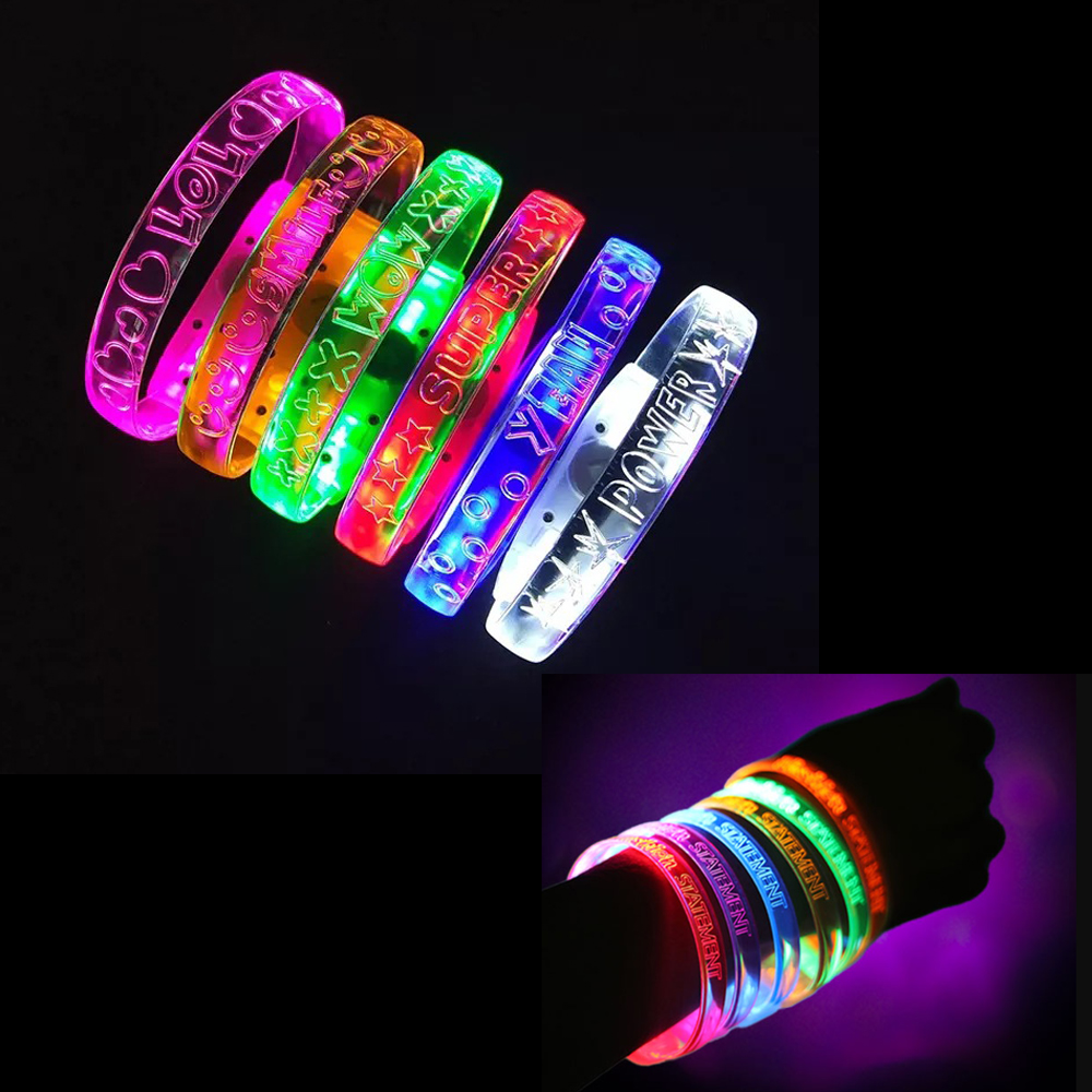 Laser engrave your logo or message onto these amazing LED wristbands. Incredibly bright and interactive - perfect for night events, special events like weddings & bar mitzvahs, concerts, clubs, brand promotion & more. Alternate between 3 different lighting modes at the press of a button: constant on, fast blinking and slow blinking. Decide between single color auto flash, color-changing auto flash, or single color sound activated LED bracelets (can't be color-changing). Lights up on your wrist 360 degrees!