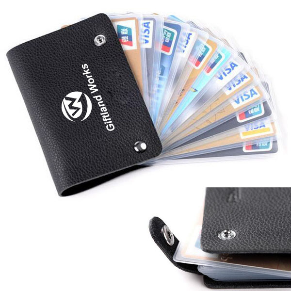 New and high quality credit card holder ID case more than to 10 credit cards. Excellent quality cow leather cover and PVC inside. It is the perfect gift for anyone. Price includes one color imprint. Full color process also is availbale.
