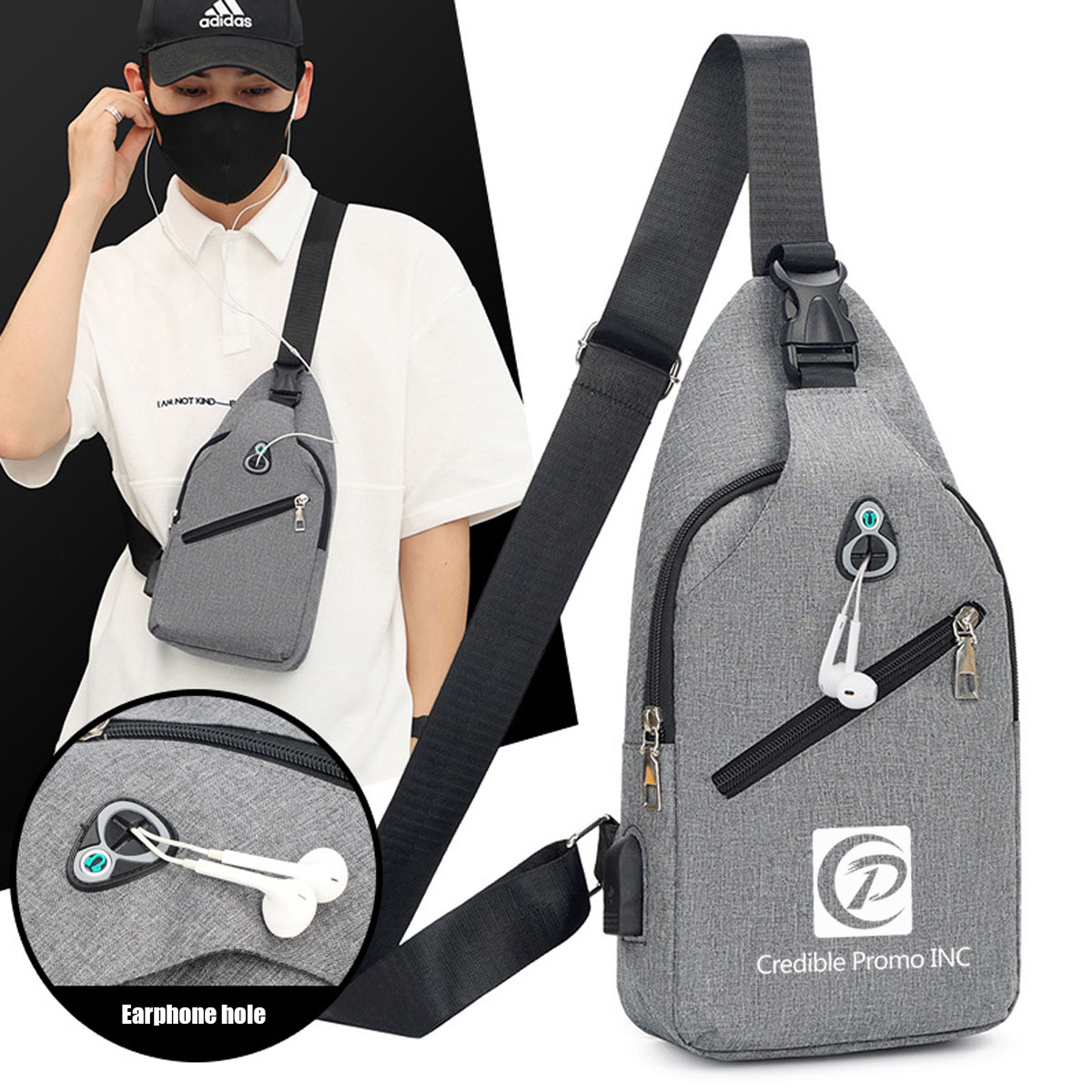 Versatile backpack with room for all your essentials. Flexible satchel shoulder strap can be adjusted loose or tight. Can be used as messenger bag, shoulder bag, crossbody backpack, casual daypack, sling bag, chest bag, travel bag, working or business bag. An earphone hole on the front pocket enables you to enjoy music easily.