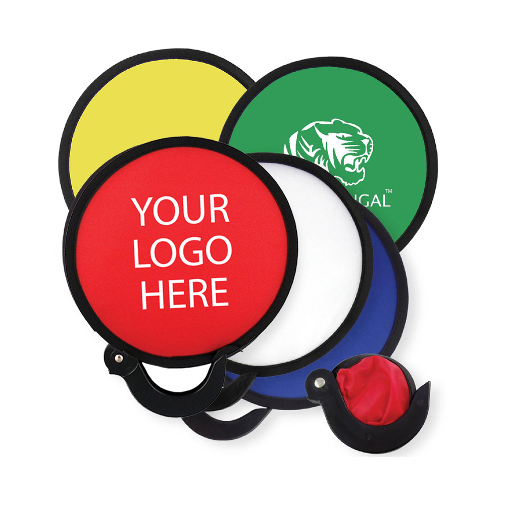 | Feature : | Promotional Custom Folding Flyer Frisbee Nylon Fan With Plastic Handle. |