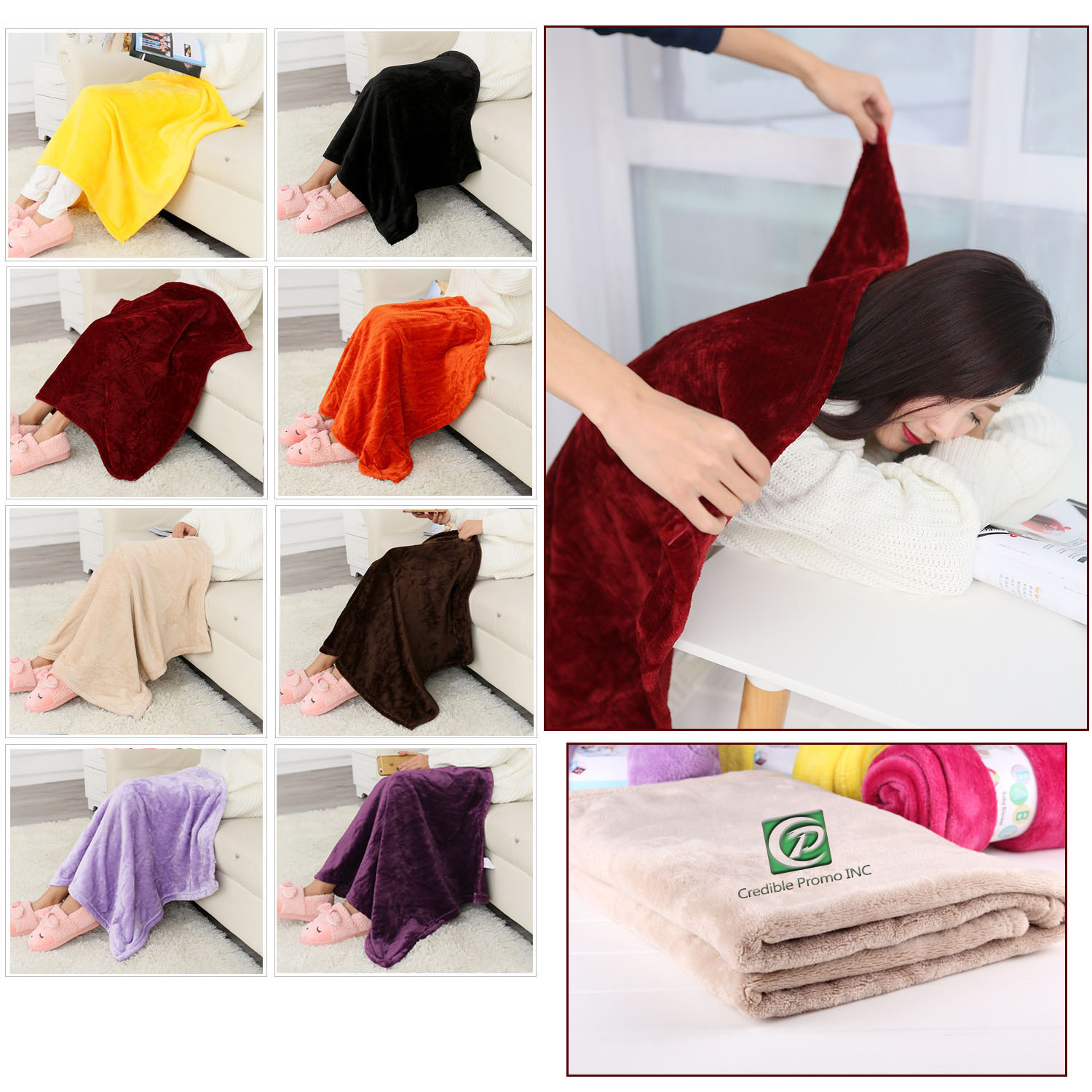 This flannel throw blanket is warm and durable for the ultimate comfort in the fall and winter months. Make your logo come to life on the coral velvet blanket. It's designed with extra soft flannel/coral velvet with tricot edging, no shedding wool, no pilling. Small size, big warmth! Choose from a wide array of color options. Your LOGO design can be embroideried on this blanket. Our listed cost is based size: 27"x39", we have other existing size for your option: 20"x27", 27"x39", 39"x47", 39"x59", 47"x79", 79"x90", 59"x79", 71"x79"(Custom size is available)