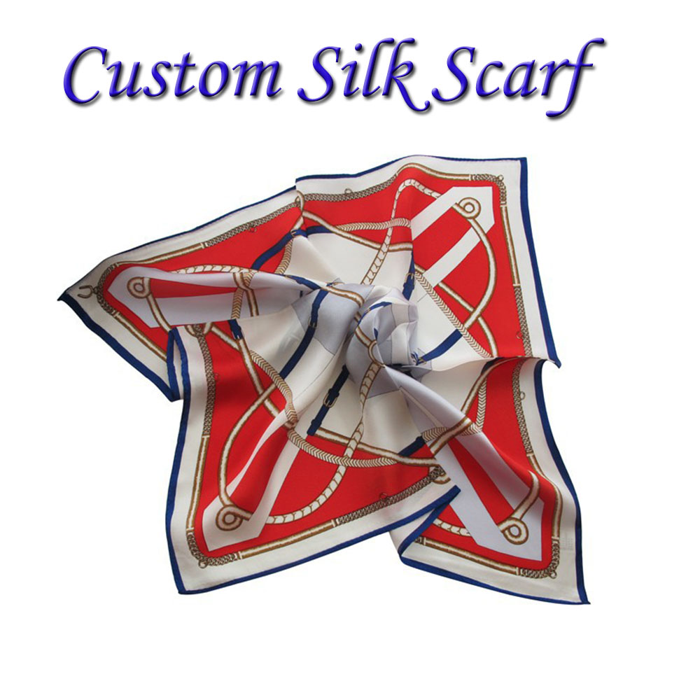 This luxury real silk scarf is an elegant addition to any women's uniform. Catch the increasing popularity now! These 100% silk scarves can be made in any design and can be full color imprinted with your any artwork. The scarf could be wrapped around your neck, waist, wrist, ankle, as well as your purse or handbag by different knotting and wearing ways. It's a perfect high-end accessory for promoting your company. Our listed price is based on size 35"x35". Other size and other shapes are available, welcome to inquiry us!