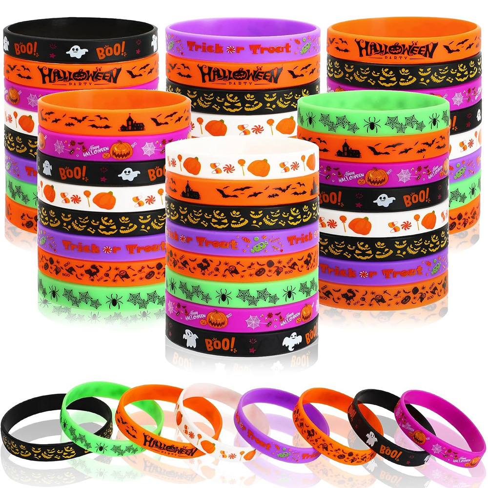 These Halloween bracelets will bring laughter and joy to the party, and are also the ideal choice for party prizes, game rewards, classroom gift bag fillers, etc. Suitable for Halloween parties. The price includes full color imprint. We also have size for children. Welcome to inquire!