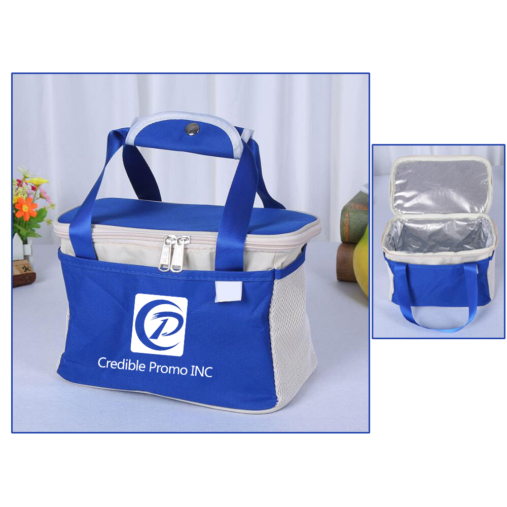 Custom high quality thermal lunch cooler bag, made from quality 600D Nylon material, quality food grade thermal liner inside, with nylon enhanced handle for easy carrying. Measuring: 13 3/4"x7 7/8"x6 3/4". Portable and reusable. Custom size and custom design is available. Great item to keep your food and drinks cold.
