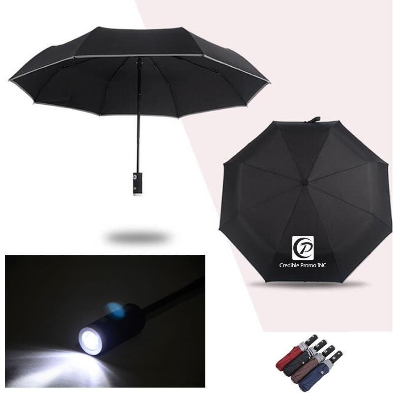 Custom LED Safe Automatic Open Foldable Umbrella With Torch