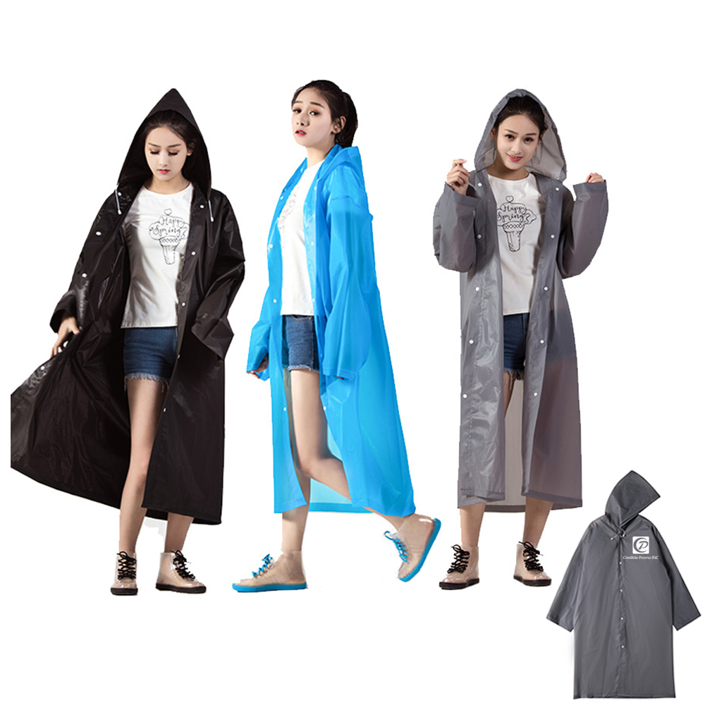 | Feature : | Custom Reusable Durable ECO Friendly Lightweight Translucent EVA Button Type Poncho Or Raincoat With Drawstring Hood |