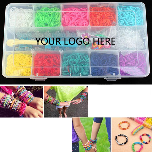 Large storage case with divided sections to keep your accessories organized and tidy. Child-friendly DIY braided rubber band, can weave bracelets, necklaces. Package:1 box 27*15.5*5.5cm, Including rubber loom bands ,Monster loom ,Y Small loom, small hook, Clips, Charms, instruction. Your logo can be imprinted on the outside box.