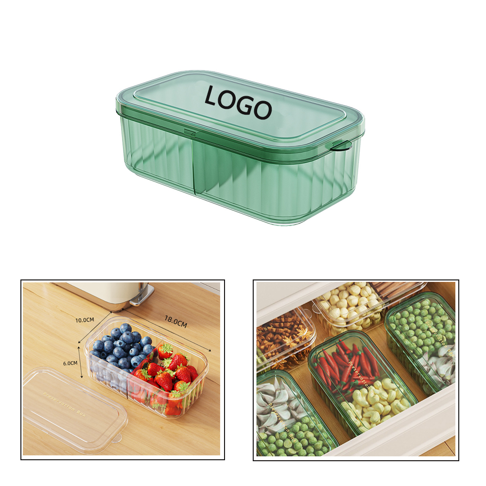 This food storage box with a lid is made of high-quality food grade plastic. Divide the interior into two small spaces, making the food less likely to cross taste. The refrigerator organizer can be stacked in multiple layers, which saves space, makes the refrigerator more tidy, and makes it easier to store your ingredients.