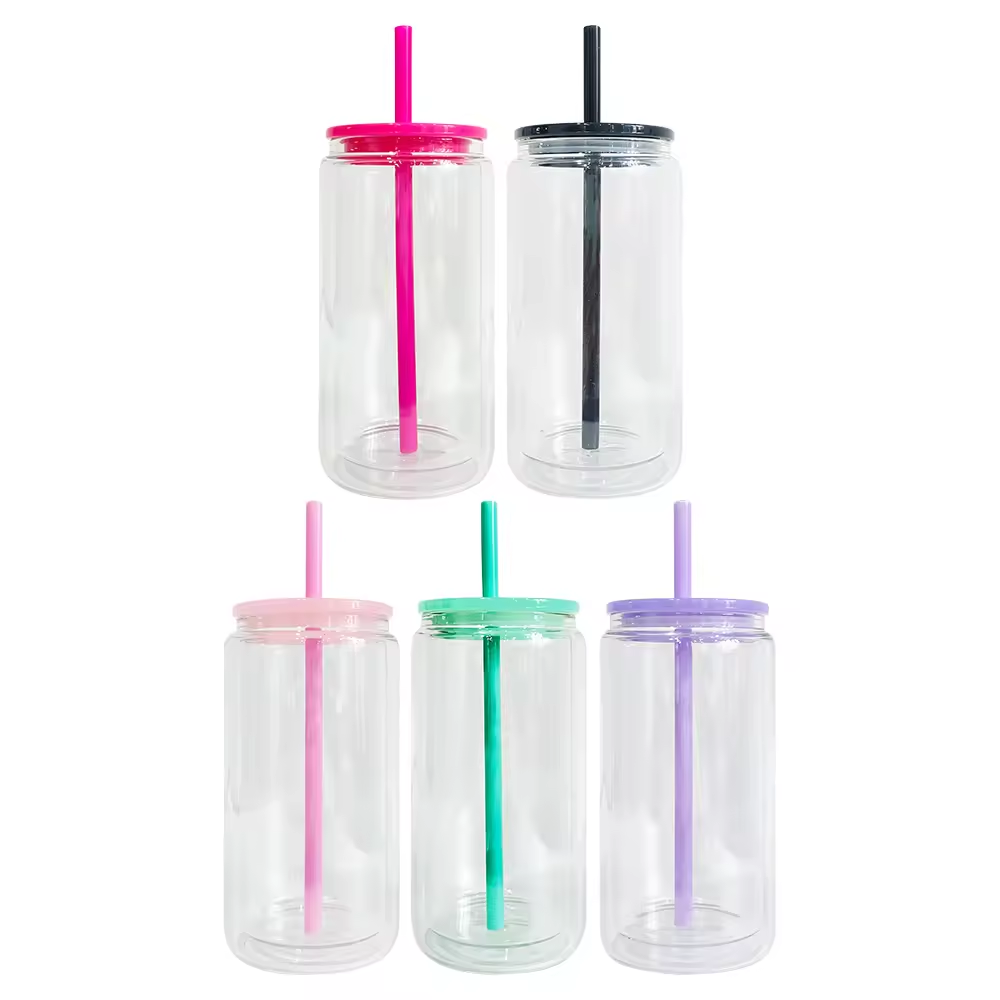 Double Wall Insulted 16oz Plastic Can Cup with Straw and Lid
