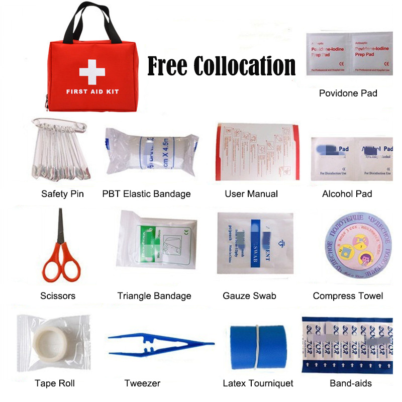 | Feature : | Emergency First Aid Kit Packed In Waterproof Nylon Zipper Handbag |