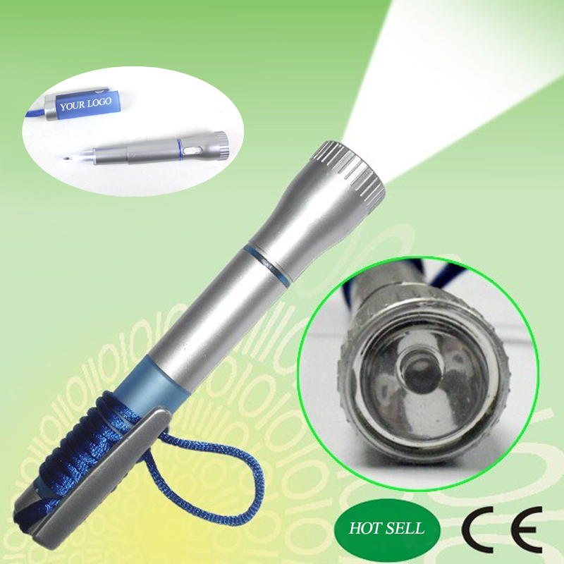 This 2 in 1 Flashlight Pen is made from plastic. Batteries are included. It has a break-away neck cord when you want to use it for a pen. Your LOGO can be imprinted on the cap or flashlight body.