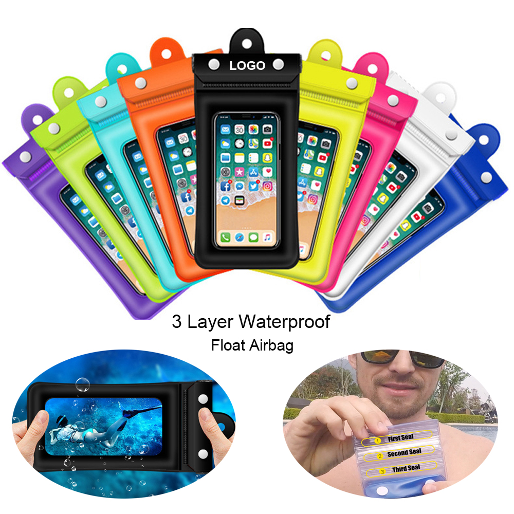 Do you still feel trouble for swimming when put phone? Just try this pop up float airbag ! Suitable for phone screen size below 6.0". 3 Layers waterproof, Qualified for IPX-8. PVC is much thicker than the cheaper one! Multi-function and perfect when go surfing, fishing, skiing, swimming, climbing, drifting, hiking, camping, etc.