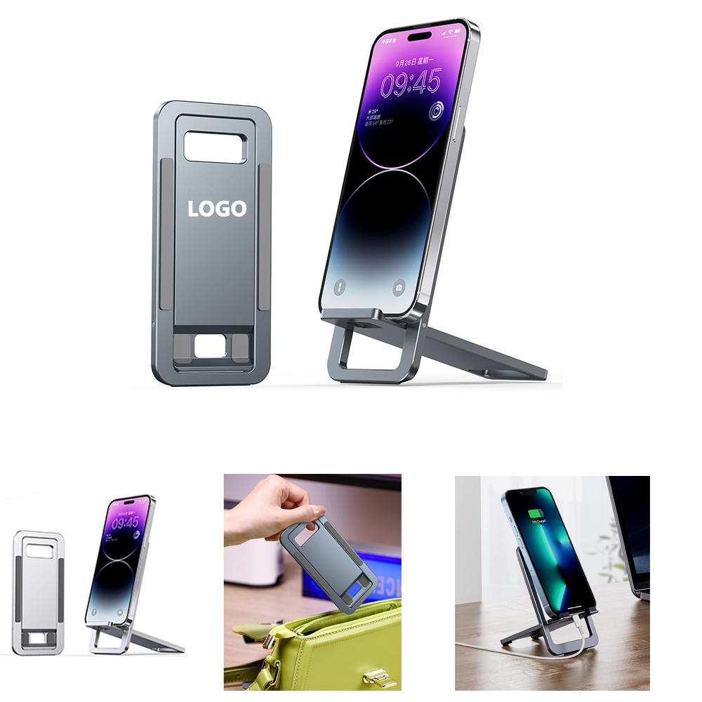 This cell phone stand is compatible with all 4-10 inch smart devices. This portable cell phone holder for desk is foldable and can be completely folded into a pocket-size, it is easy to carry anywhere. It can easily be put in your pocket or bag during travel or business trip. It is made of aluminum alloy, which is textured and durable. Generally use laser printing logo, so that the logo to maintain longer.
