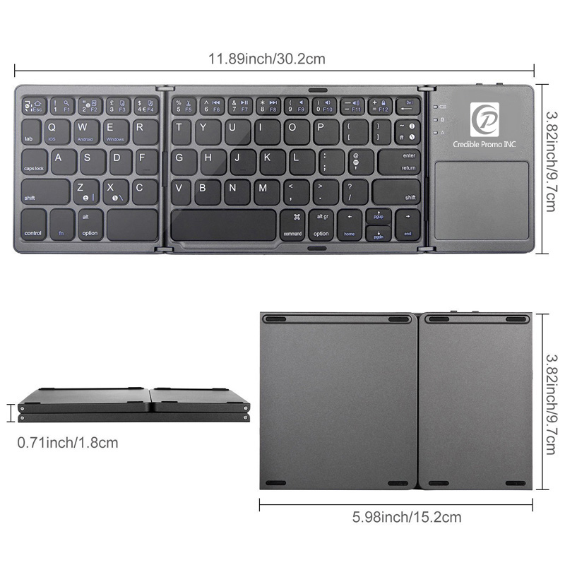 This is a very stylish wireless keyboard. It has a touchpad. You can control your device without a mouse. Extremely thin and foldable keyboard can be a perfect gift for anyone who often travel or on a business trip. It allows you to operate your mobile devices on the go. Write fast, easy and error-free! It is also a good choice for editors. Aircraft grade aluminum for excellent stiffness. It is very durable and has the ability to resist bumps. Sturdy and handy at the same time. Compatible with 3 major operating system: iOS / Windows/ Android. Your logo can be printed on top of the touchpad.