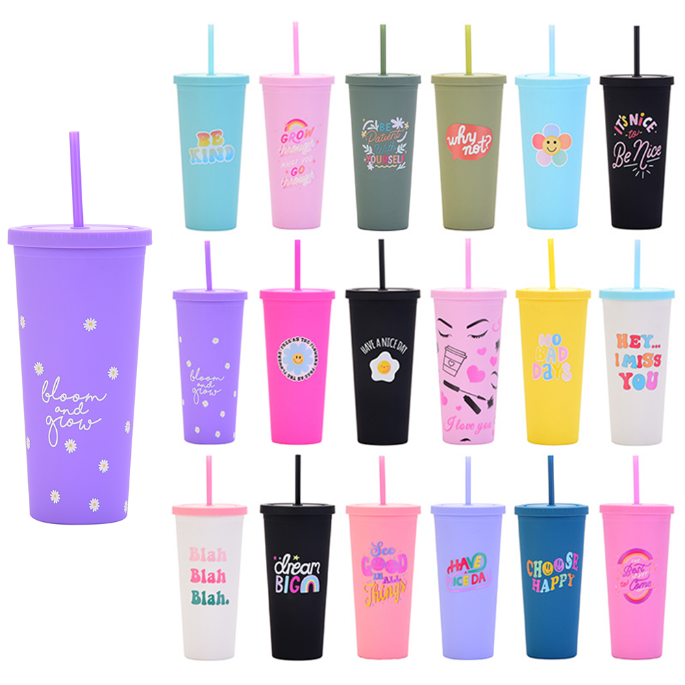 Full Color Imprinted 24oz Double Wall Plastic Straw Cup with Lid