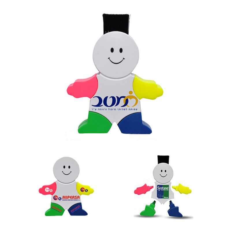 This gentlemen highlighter features four highlighters in one and computer sweeper, pink, yellow, blue and green highlighter colors. Designed for corporate gift, give away, meeting, presentation, vacation, sports, outdoor, school, and travel. Oversea production.