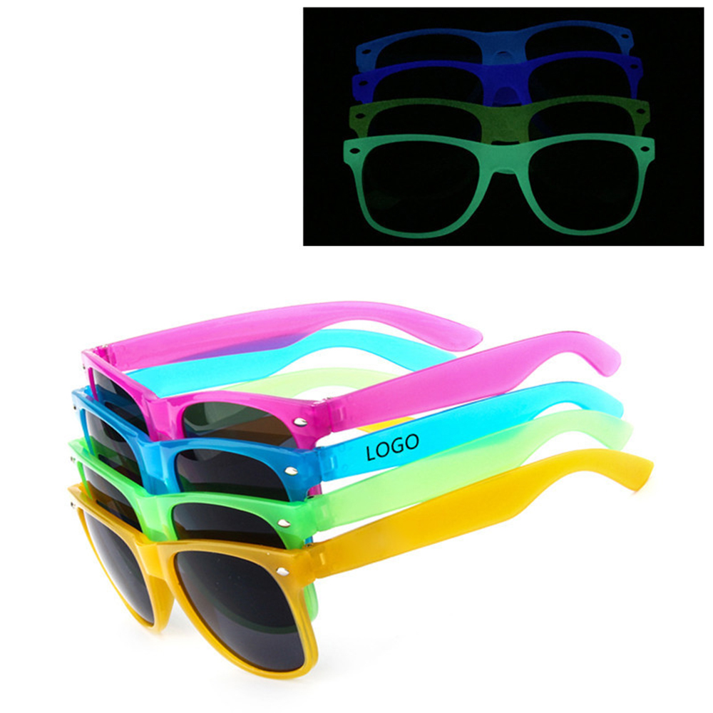 These retro-fashionable sunglasses glow in the dark and are a great accessory for parties. The frame material of the PC is lightweight and easy to clean. The product size is 5.7'' x 1.8'' x 5.7''. There is also a children's size of the same style, the size is 5'' x 1.6'' x 4.9''. This quote is for adult glow-in-the-dark sunglasses size, if you want a children's size, please feel free to consult.