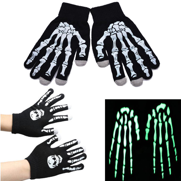 New gloves for Halloween skull, Touchscreen Gloves with Grow in dark your logo on the back of hand,These high quality acrylic gloves have touch screen-sensitive microfilament sewn directly into the finger tips. Now you can use your smart phone or tablet without removing your gloves. Any pantone colors available.