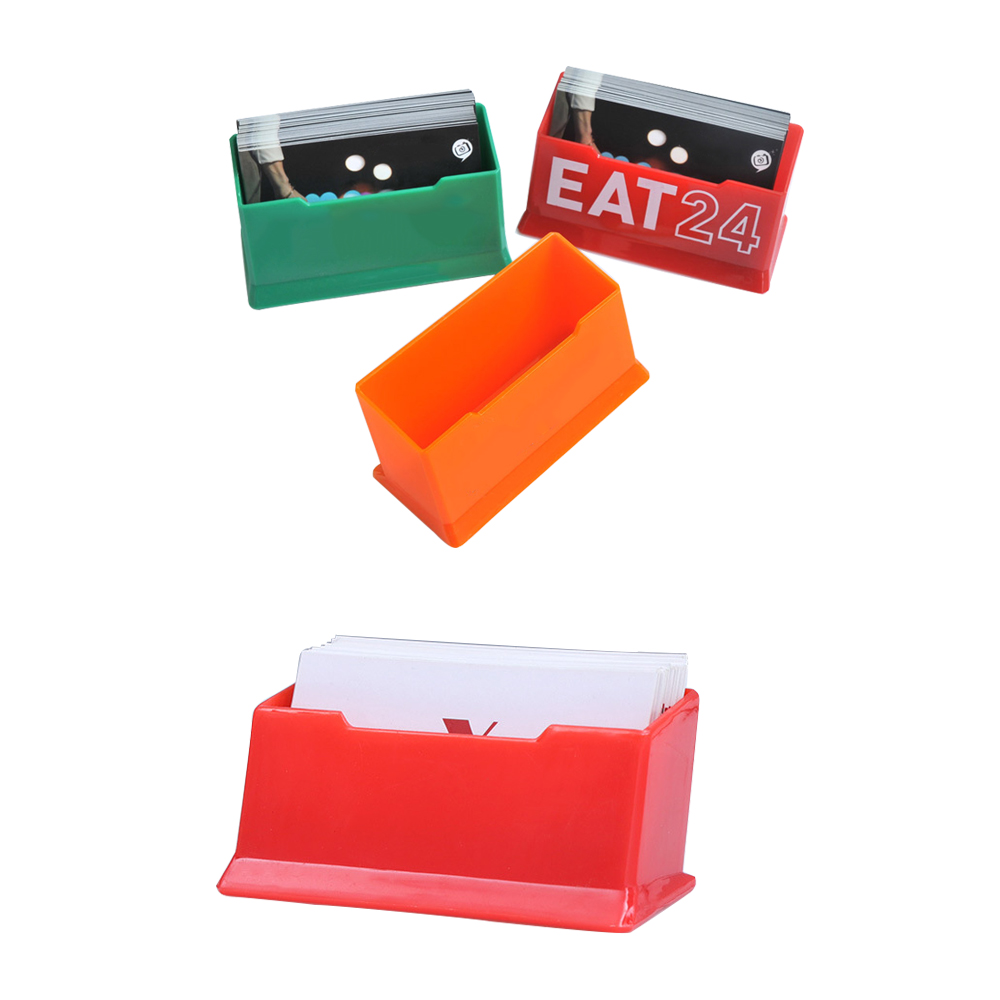 This plastic business card holder, a high quanlity and reasonable price desktop holder. Lightweight and compact. By placing your business card in an easily accessible area, not only to keep the desktop clean, but also to let your partner see at the first sight. Great office item! Add your logo on it to promote your business.