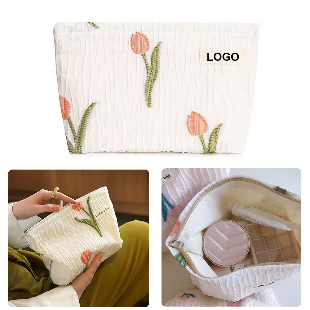 | Feature : | Purse Zipper Cosmetic Bag Large Capacity Quilted Canvas Cute Aesthetic Flower Makeup Bag Gift Travel Toiletry Make Up Organizer |
