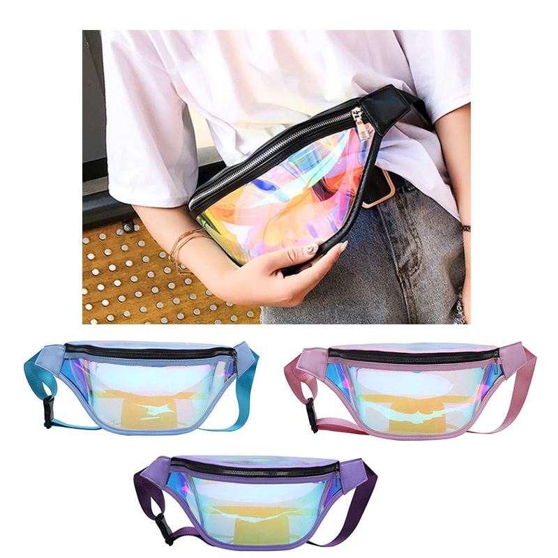 This waist bag is made of high quality TPU material. It's waterproof, moisture proof and durable. Now you won't have to spend too much time looking for things with this transparent pouch. It features a unique holographic appearance that gives it a beautiful, fashionable look that is perfect for a custom logo.