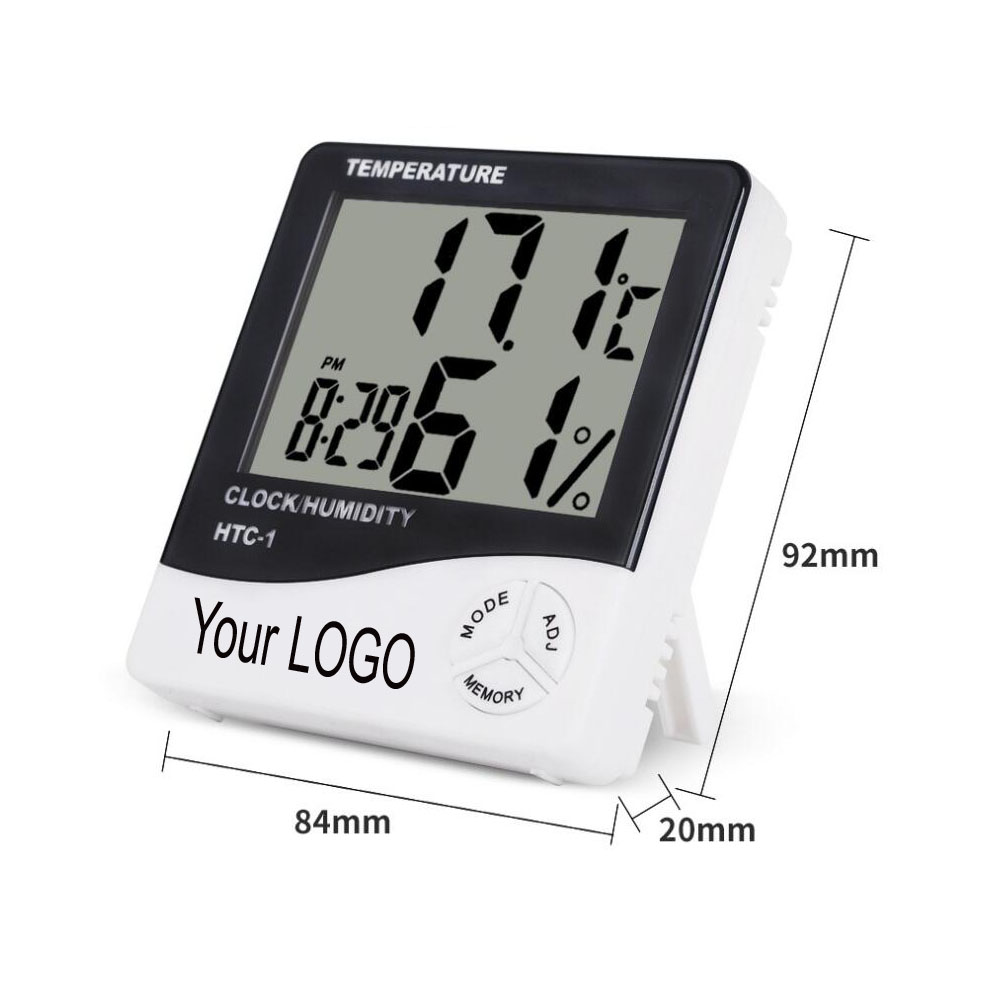 Multifunctional temperature humidity clock. Hot sale! It's not just a thermometer, but also a clock, and a humidity meter or hygrometer. Desk-top placing or wall hanging design. 12-hour / 24-hour displaying system selectable. C/F unit selectable, alarm function. Clock & Calendar function (month and date). Temperature range: -10~ + 50 degree C ( -14 ~ +122 degree F), Humidity range: 10%~99%RH. Temperature accuracy: ± 1 degree C (1.8 degree F), Humidity accuracy :± 5%RH. Battery included.