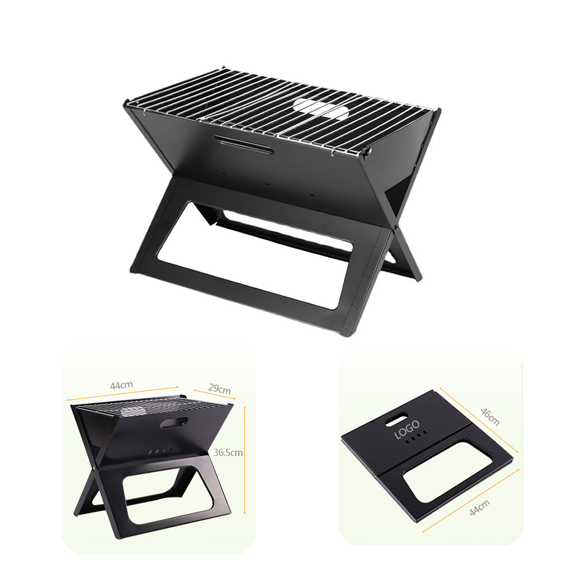 This cooking grill uses charcoal as its source of fuel. Can be folded up in an instant for easy portability. Made from high heat resistant painted steel. Perfect for camping, tailgating, and picnics. Size: 480*320*390mm.