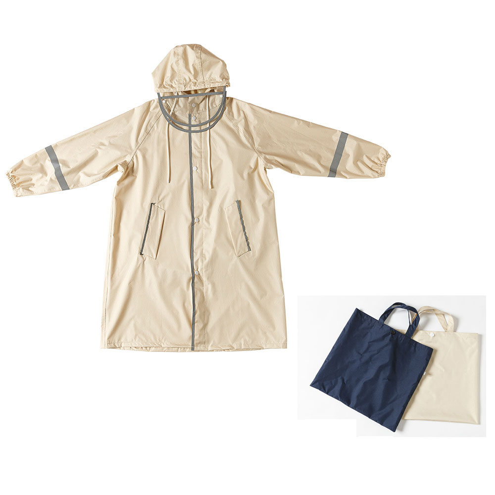 This children's rain poncho is made of pongee and it is available in a total of 5 sizes, suitable for heights from 120 cm to 180 cm. The rain poncho is very loose and can accommodate a large school bag at the back. It can also be worn over a thick jacket in winter. The poncho comes with two hoods, which protects the face well from the rain. This rain poncho also has light-proof strips for safety.