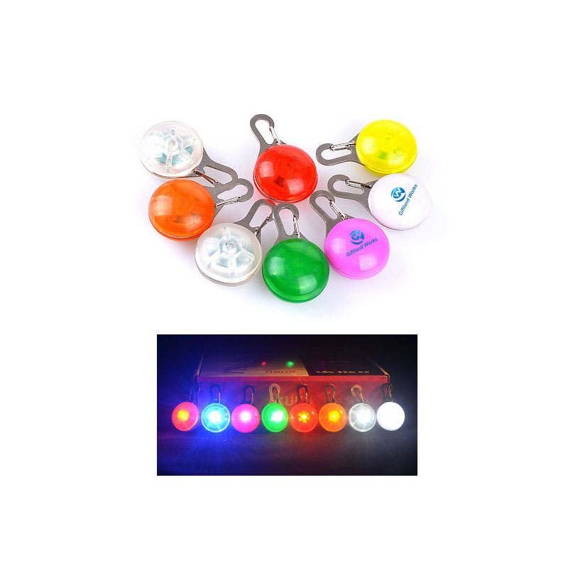 LED Safety Dog Pendant is made by plastic. Led light pet collar function is to keep you and your pet safe. When you press switch, the led will be flashing, flashing mode steady light, quick flashing, slow flashing. Pet safety light was powered by 2pcs*CR2016 button cells and button cells can be replaceable.