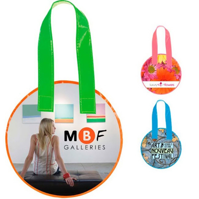 This cute round laminated non-woven tote is made out of sturdy, water resistant non woven polypropylene, this bag is a great size for smaller purchases or holding small sizes of beauty items. And the round shape makes it a great attention-grabber and ice breaker. And every time that your recipients carry them around, everyone they pass will be looking at your logos.