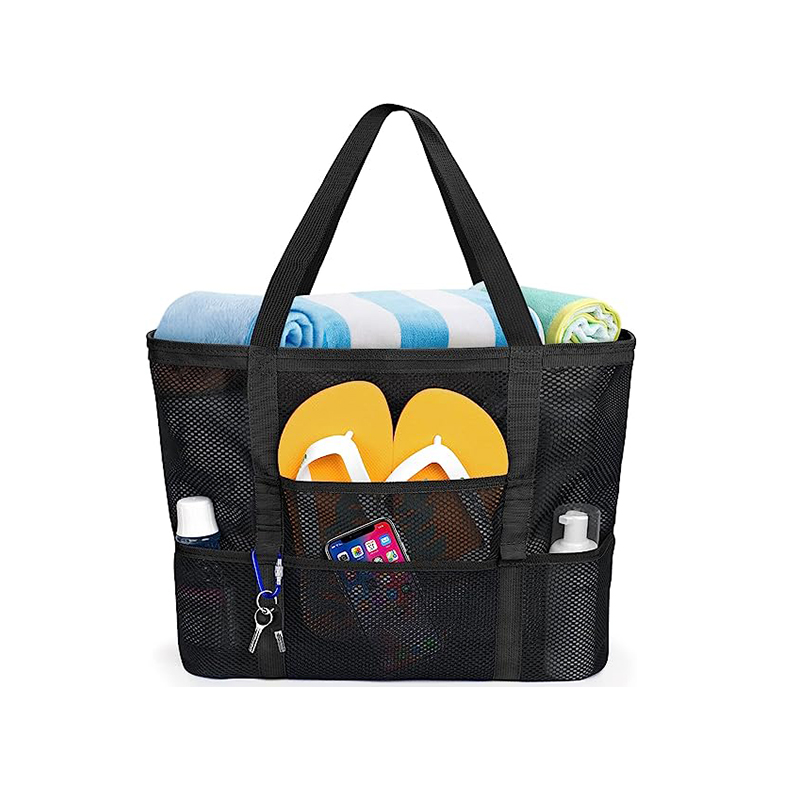 | Feature : | Sandproof Mesh Beach Bag Waterproof Tote Bag for Women Large Foldable Mesh Swimming Bag with Pockets |
