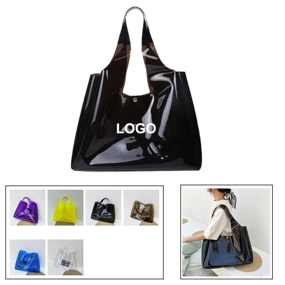 This is a transparent PVC shopping bag, tote bag style, with dimensions of 17.9 '' x 13.4 '' x 5.32 '', enough to accommodate daily carry on items. It can be carried on one shoulder or by hand, with no problem for daily commuting use. The usage rate is very high in spring and summer, making it a great promotional product.