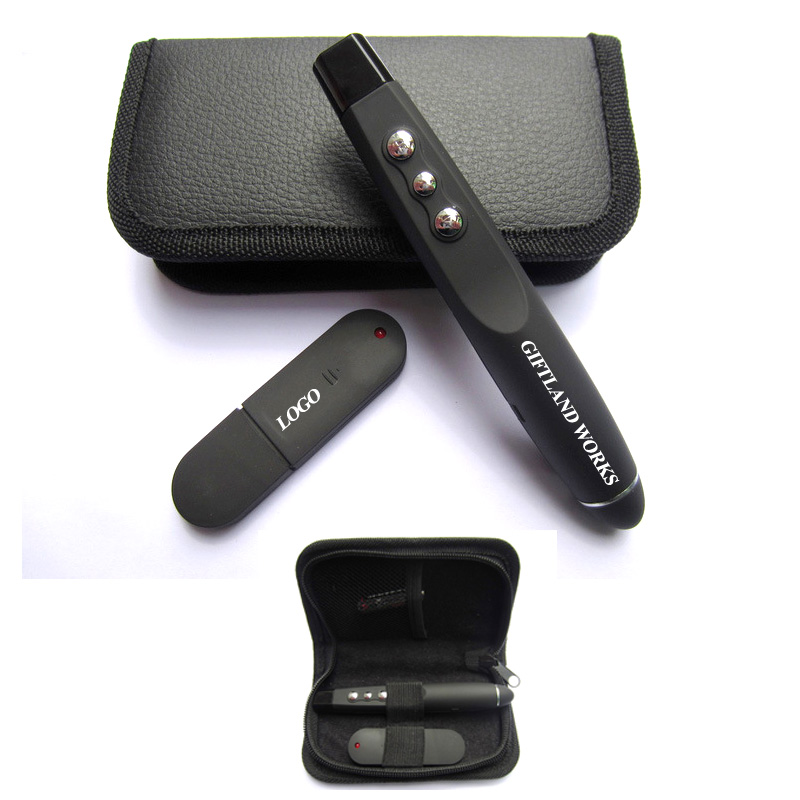 This multi-functional laser pointer kit includes: one pointer pen, one USB receiver, one battery and one pouch. The Pointer Pen can control the Powerpoint Program in the range of 11 yards. Use the laser light to point out your highlight in your great speech. Your best multi-functional device when you take part in Product Presentation, Teaching, Conference and other public speech. Battery included. Your customized company LOGO can be imprinted on.