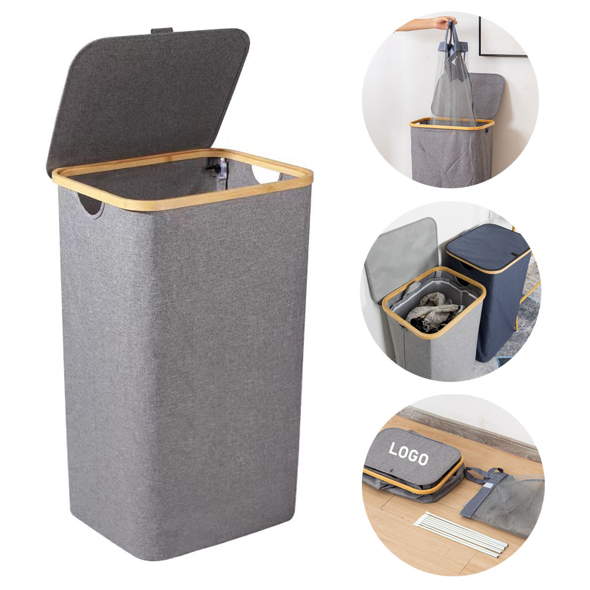 | Feature : | Foldable Clothes Hamper Laundry Room Basket with Removable Inner Bag and Bamboo Handle |
