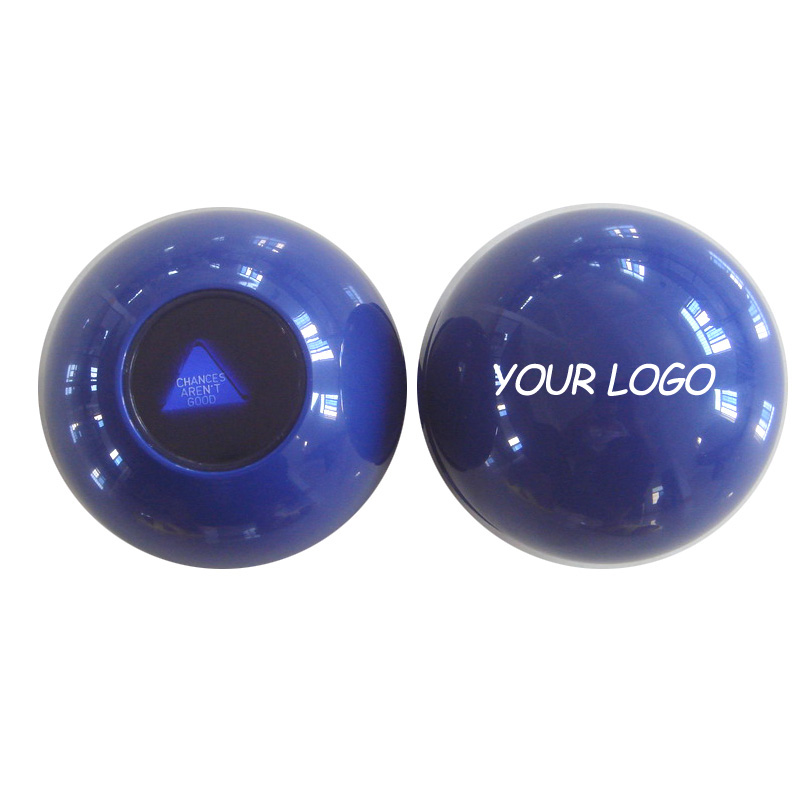 Magic 8 Ball, made from ABS. Diameter is 4 inches. Ask your Magic 8 Ball a question before you make decisions. Put the window down and shake the ball for some seconds, then turn over and look in the window for answer. 20 different answers included in the floating icosahedrons inside of the ball.