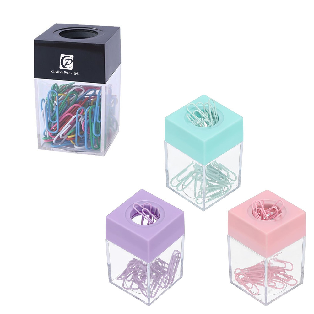This magnetic paper clip box is 1.6" x 1.6" x 2.7", nice for small and medium size paper clips, able to be placed on your desk for its compact size, making it within arm's reach. The magnetic paper clip dispenser with magnetic opening can prevent the contents from spilling out, keeping your desk and floor neat and tidy. One holder contains 18 paper clips.