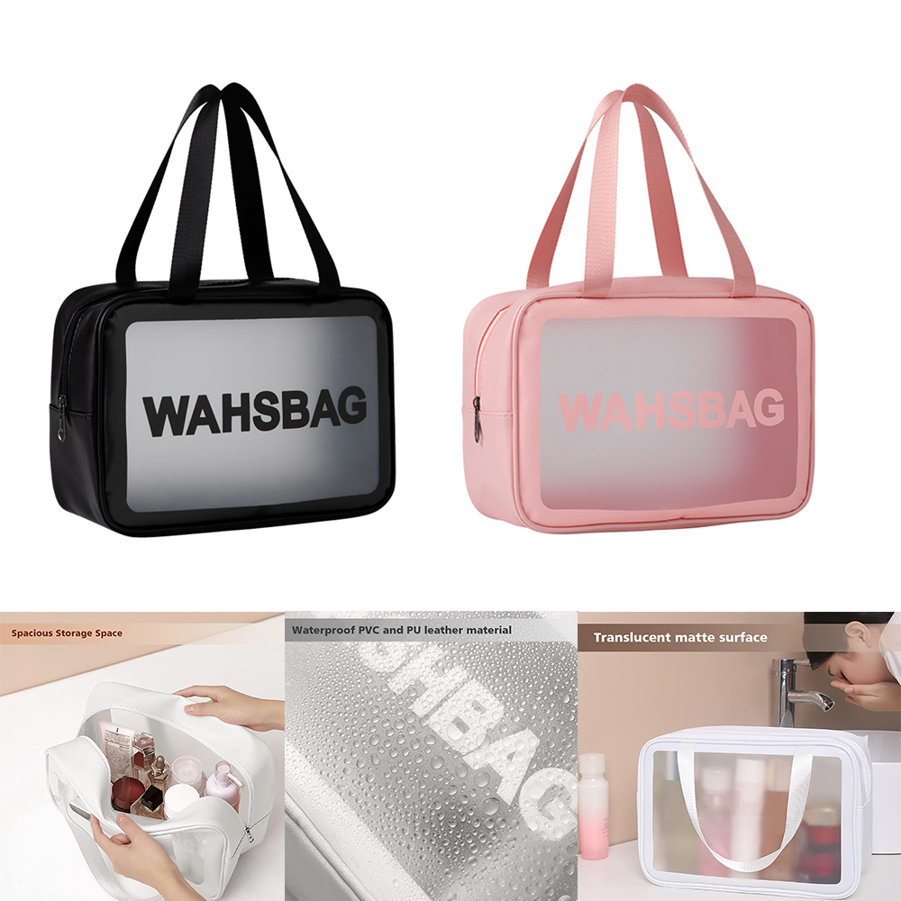 Matte Translucent Toiletry Bag with Handle Makeup Cosmetic Organizer