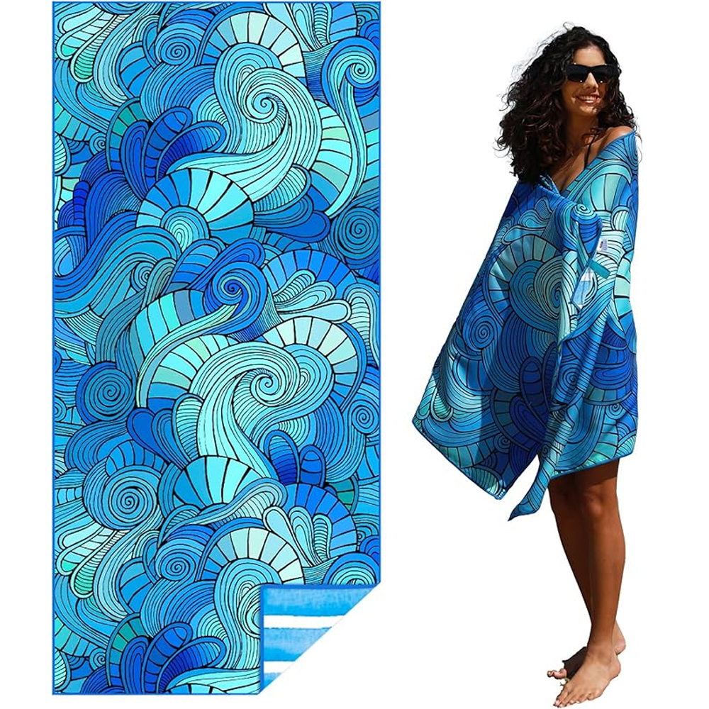 The microfiber beach towels are made of super soft microfiber material that is gentle on your skin.They are also odor free, which means that they won't develop an unpleasant smell. You'll love the luxurious feel of our towels, which make them a great gift for anyone who enjoys spending time in the sun. Can be printed corner to corner.