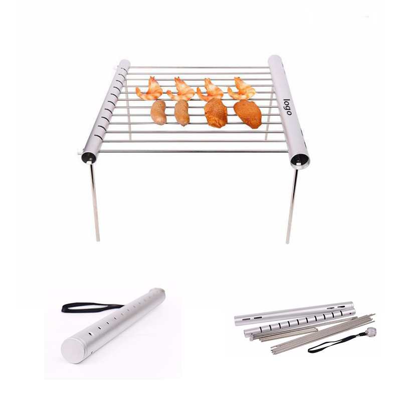 This collapsible grill is constructed from durable stainless steel and comes with a lanyard for easy hanging when in storage. It is easy to clean, just wipe the rods with a towel and slide back into the convenient carry tube. The camping barbecue grill is light. Its dimensions are an incredibly small (12.1" x 0.9"). All grill parts are stored inside the aluminium alloy tube and easily slide into your backpack. This grill is perfect for picnics, backpacking, backyards, survival. Your customized logo can be laser engraved on.