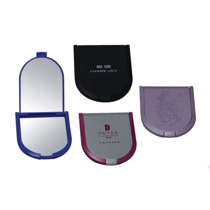Mini Mirror in semicircle shape. Made from plastic and glass. Compact and double mirrors design, size is 3"x2 1/2", suit for your pocket and handy bags. Ideal for daily use, travel, student, office, salon and beauty business etc. Your LOGO can be imprinted on the outside.