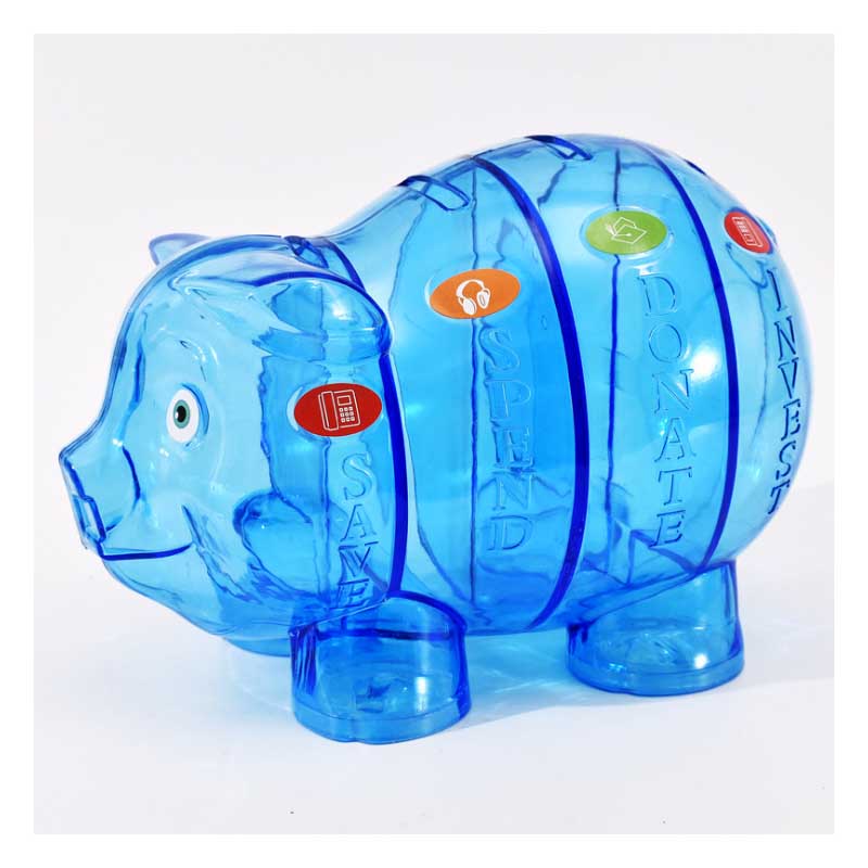 This piggy bank has four chambers for each of the four money management choices: Save, Spend, Donate and Invest. It's see through so kids can see how many coins are in each slot, and since it's a piggy bank and not a bank account, kids can lift and feel their allowance grow. Each chamber empties easily and individually through a different foot. This piggy bank helps kids understand that money shouldn’t just be spent. It should be saved, spent, invested and even given away.