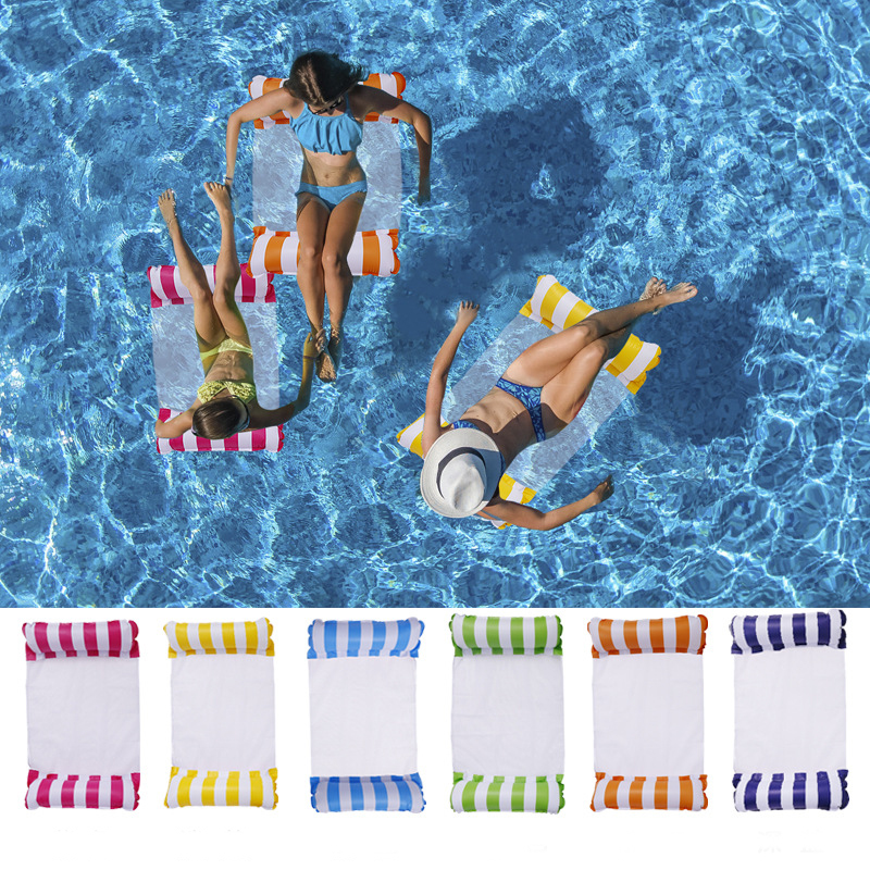 The inflated hammock lounge can float you on the water well, like sleeping in a hammock, soft and comfortable. Even if you are not good at swimming, you can also enjoy the water play. This Swimming Pool Lounger's ergonomic design provides plenty of support and an abundance of comfort. It's easy to inflate head and foot rests also deflate easily for quick and compact storage. Perfect for the ocean, lake, river, or pool. Recommended for adults, children under the guardianship of adults use. The MOQ for custom logo is 2000 pcs.