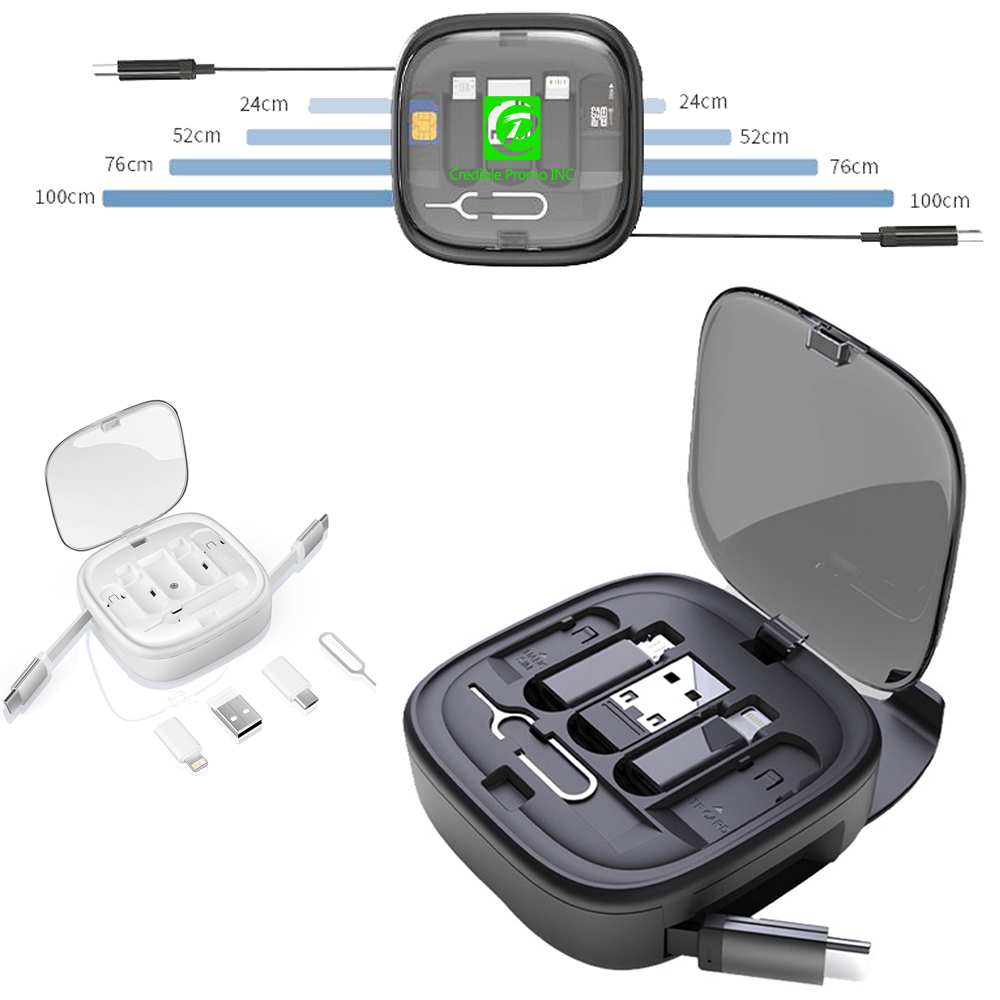 Features built-in cable and sim card removal tool, phone stand back plate, and storage slots for nano SIM card and TF card. Ideal tech travel organizer. Meet all your phone charging and data transfer needs.